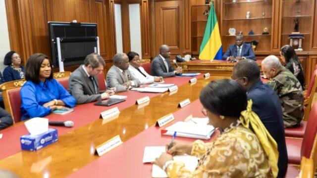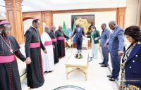 Le Président de la République, Brice Clotaire Oligui Nguema, en prière avec les membres de la Conférence épiscopale du Gabon le mardi 20...