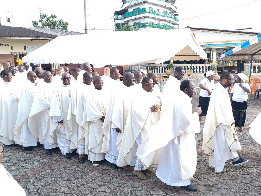 Procession de prêtres de la messe chrismale du 31 mars 2026 à Saint Michel de Libreville La paroisse Saint Michel de Libreville, a...
