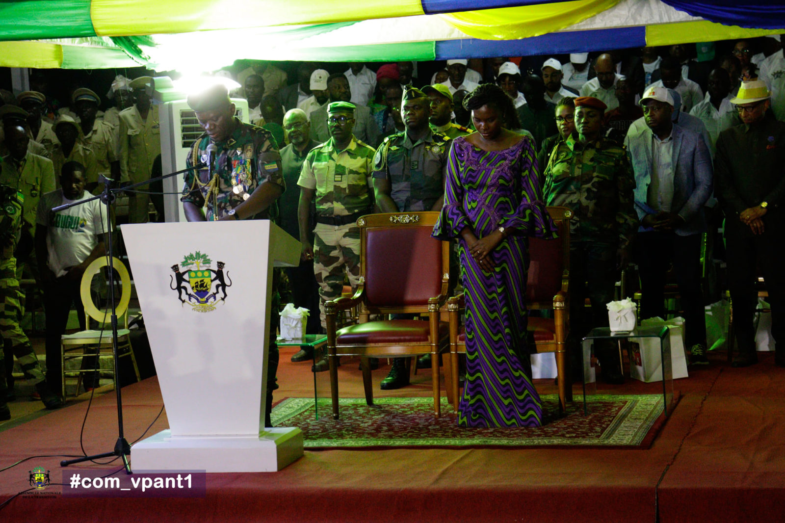 Le Président de la Transition, Brice Clotaire Oligui Nguema, demandant une minute de silence en faveur des âmes emblématiques de Ntoum