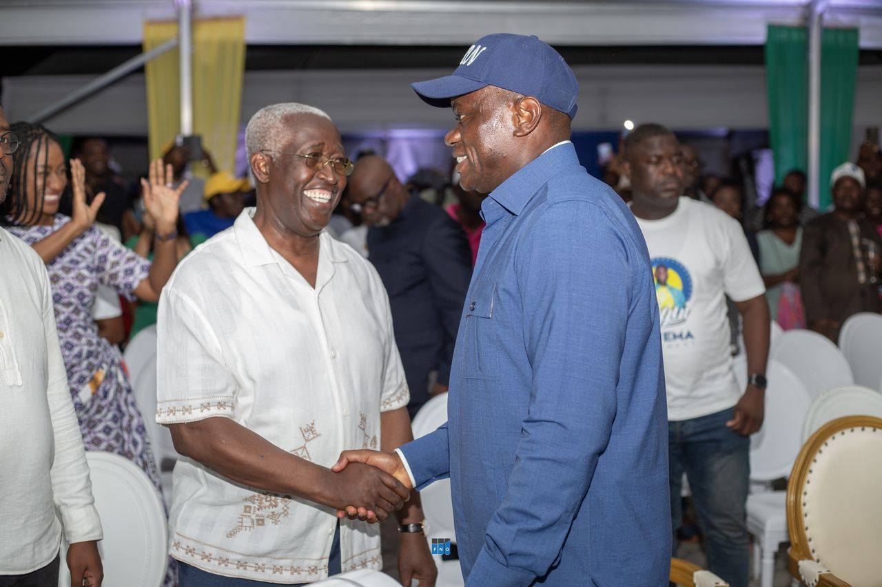 Le Président de la République, Brice Clotaire Oligui Nguema ( casquette) félicité par son Premier Ministre, Raymond Ndong Sima, après sa victoire écrasante à la présidentielle 2025
