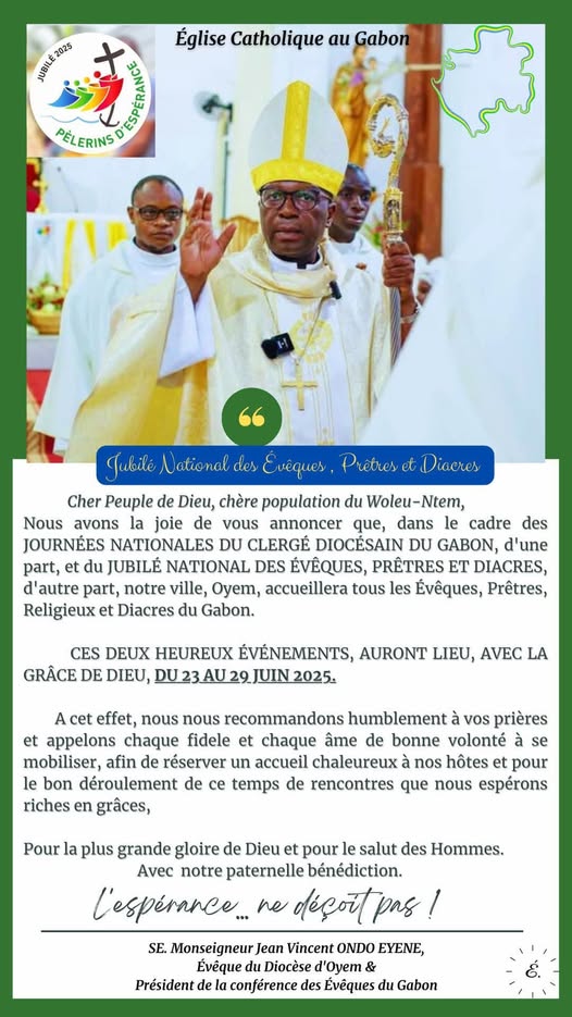 Le diocèse d’Oyem, abrite du 23-26 juin les activités du jubilé national des évêques et prêtres à Oyem, avec à la clé des ordinations diaconales presbytérales.