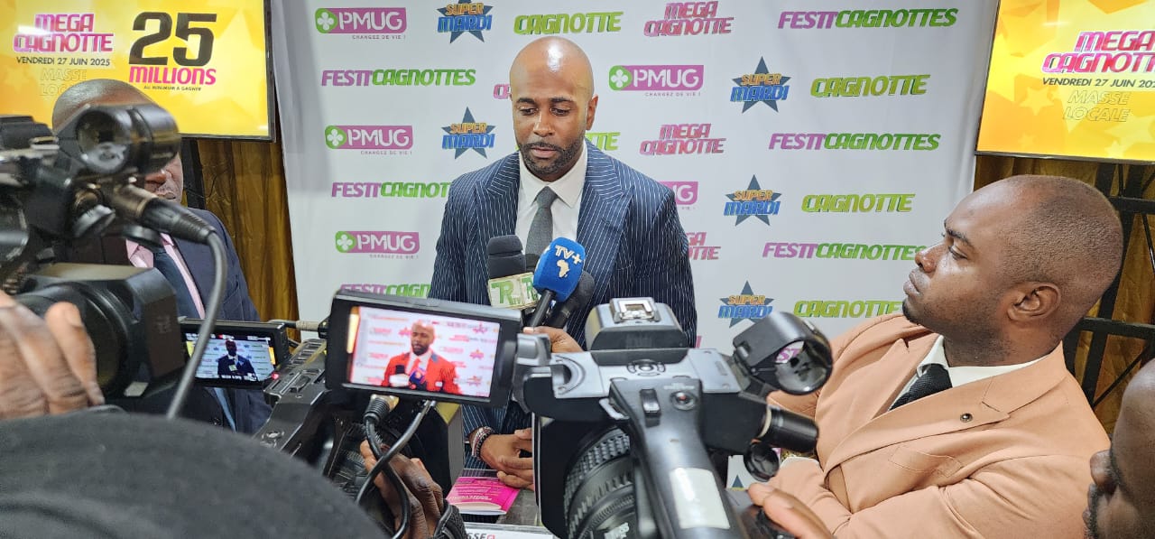Le Directeur Commercial du PMUG, Lionel Michaud, fixant les principaux enjeux de Festi’cagnottes Masse locale, ce mardi 24 juin à Libreville.