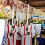 Guy Pierre Biteghe (au centre), nouveau Maire de Lambaréné Le Ministre de...
